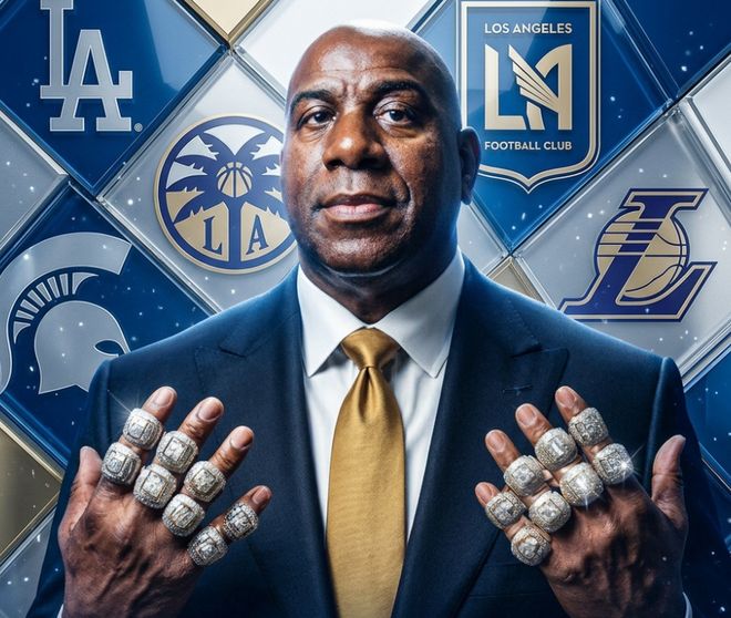 约翰逊在社媒上写道:“今天对我来说意义非凡,因为今晚我将在道奇体育场领取我的第18枚冠军戒指。我们将在戒指之夜庆祝蝉联世界大赛冠军——我真的太激动了!我目前拥有的冠军荣誉包括:1枚埃弗里特高中州锦标赛冠军戒指、1枚密歇根州立大学NCAA冠军戒指、11枚湖人队冠军戒指(5枚作为球员、5枚作为股东、1枚作为管理层)、1枚洛杉矶FC美国职业足球大联盟冠军戒指、1枚洛杉矶火花WNBA冠军戒指、3枚洛杉矶道奇队世界大赛冠军戒指。其实,算下来我其实一共拿了20枚,哈哈!因为还没算上我作为Team Liquid战队合伙人拿到的2枚电竞冠军戒指呢!”